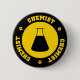 Goupille jaune de bouton de noir et de précaution avec le lettrage de style et le flacon erlenmeyer Collégiaux.