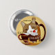 Mignonne pour le café et les amoureux de les chats : un bouton de design amusant avec un chou mignon se tenant à la crème d'un cupcake contre une canette de café et arrière - plan de tasse.