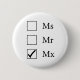 Une liste de titres avec des checkboxes. Le MX non sexiste de titre a un coche dans la boîte. Également énumérés sont M. et Mme, avec les checkboxes vides. Le MX est populaire avec les personnes non-binaires, telles que les personnes d'agender, androgynes et de genderqueer.