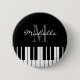 Bouton d'insigne de nom personnalisé avec touches de piano. Design élégant de typographie noir et blanc pour pianiste, pianiste, professeur de musique, instructeur, musicien etc. Conception d'instrument de musique classique avec nom ou monogramme. Amusement pour cocktail, bachelorette, mariage, anniversaire, concert, événement d'entreprise, etc. Aussi agréable comme la faveur du parti.