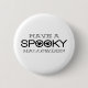 Typographie Éffrayante simple et moderne Bouton d'Halloween en blanc et noir avec un design de texte cool avec deux fantômes fantaisistes regardant à travers le mot "Éffrayant". Ce bouton sassy d'Halloween est une façon amusante de montrer votre esprit d'Halloween! Facile à customiser, ajoutez simplement votre propre texte éffrayant ! Cliquez sur le bouton "Customiser" pour déplacer l'élément de conception ou ajouter votre propre texte personnalisé.