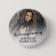Bouton photo hommage à porter par les amis et la famille lors d'un enterrement, avec une photo recouverte de blanc, les mots "dans la mémoire aimante" et personnalisée avec leur nom.