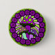 Un bouton avec trois verts et champignons pourpres sur un fond plus vert clair et pourpre de remous. La conception est entourée par des motifs floraux pourpres foncés.