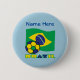 L'épingle à bouton montre le mot BRÉSIL, aux couleurs du drapeau brésilien, figurant sous le drapeau du Brésil. Ci-dessus, une boule de football, également aux couleurs du drapeau. Le drapeau lui-même vole au-dessus et derrière tout. Ajoutez un nom, en lettres bleues, au-dessus du design pour une touche personnalisée. L'Arrière - plan est bleu clair.Une façon amusante de montrer son soutien à TEAM BRAZIL lors des rencontres internationales et mondiales de football. Super pochette. Peut-être même amusant pour les réunions de famille.
