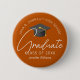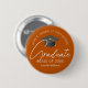 Ce bouton moderne orange brûlé pour diplômés comprend votre nom de lycée ou de collège pour la classe de 2025. Customisez avec votre année de graduation sous l'écriture manuscrite blanche chic et le casquette gris pour une grande faveur de la fête de graduation personnalisée.