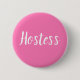Bouton Hôtesse rose avec belle calligraphie. Parfait pour les faveurs de mariage, douche de mariée. Vous pouvez le personnaliser avec votre nom.