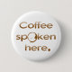 Portez votre dépendance de caféine avec fierté ! La conception proclame le "café parlé ici" avec un grand anneau de café au milieu de elle. Moka, Java, latte, café express, cappuccino - n'importe ce que vous l'appelez, vous parlez la langue ! Perfectionnez pour l'usage au café-restaurant, au dortoir, ou au divan de TV.