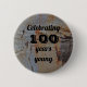 Ce bouton offre une façon unique de reconnaître et de célébrer quelqu'un qui a atteint 100 ans jeune. L'arrière - plan présente un motif rustique marron et beige d'écorce d'arbre. Cette écorce apparaît en papier fin et crée un arrière - plan neutre pour votre texte. Tous les textes, y compris l'âge, peuvent être personnalisés selon vos besoins.