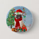 Macaron Rond 5 Cm Chien carlin en neige avec cadeaux de Noël