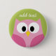Macaron Rond 5 Cm Chouette caricaturale mignonne - rose et vert citr