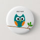 Chouette : Bouton Modèle de Chouette Bleue et Or. VIRGINIA5050 - cadeaux créatifs et insolites pour toutes les occasions. CADEAUX INTERNATIONAUX à zazzle.com/InternationalGifts, Boutique cadeaux Floride à zazzle.com/FloridaGiftStore*, BOUTIQUE CADEAUX RETRAITE à zazzle.com/RetirementGiftStore, BOUTIQUE CADEAUX I LOVE à zazzle.com/ILoveGiftStore, et MAGASIN ANNIVERSAIRE à zazzle.com/BirthdayGiftStore