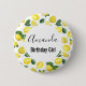 Bouton fille d'anniversaire avec un mignon motif de citrons jaunes avec des feuilles verts et des tranches de citron fraîchement coupé. Un cercle blanc superposé avec votre texte à l'intérieur.