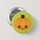 Citrouille mignon d'Halloween avec un joli sourire sur le visage, avec du maïs bonbon dans l'arrière - plan.