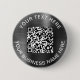 Bouton promotionnel moderne pour votre entreprise ou organisation avec un fond métallisé faux argent foncé brossé. Ajoutez votre code QR ou logo et deux lignes de texte blanc, tels que le nom de votre entreprise, slogan, merci, ou laissez vide.