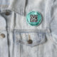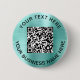Bouton promotionnel moderne et simple pour votre entreprise ou organisation avec un fond métallisé faux vert menthe brossé. Ajoutez votre code QR ou logo et deux lignes de texte personnalisé, telles que le nom de votre entreprise, slogan, merci, ou laissez vide.