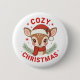 Macaron Rond 5 Cm Cozy Christmas Cute Deer with Santa Hat