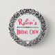 Voici un bouton graphique noir et blanc vintage classique. Mettez votre propre message sur ce bouton pour adapter votre propre occasion. Le style, la taille et la couleur des textes peuvent être changés pour adapter votre propre conception. Perfectionnez pour des mariages, des douches, le fiançailles, la charité, des collecteurs de fonds, le vote, des organismes, le bureau, des professeurs, des bibliothécaires, des greeters, des réunions et des volontaires. Perfectionnez pour la jeune mariée d'équipe, jeunes mariées servent d'équipier, domestique d'honneur, partie nuptiale, et plus. Si utilisé comme un souvenir que vous pourriez vouloir pour inclure une date, endroit, devise ou tout autre message,