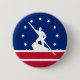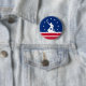 Bouton rond avec drapeau de la ville de Richmond, Virginie; drapeau bleu avec rayures rouges et blanches, avec rayures blanches et silhouette de l'homme travaillant bateau de la rivière James le long de la rivière James