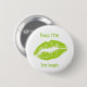 Bouton rond avec une image de lèvres vertes baisables et le texte, "Kiss Me I’m Irish" en lettrage celtique vert citron. Voir porte - clé métallique haut de gamme carré correspondant. Voir toute la collection des boutons et des paniers de la Saint Patrick dans les TOUCHES SPÉCIALES | Section des faveurs du parti.