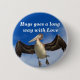 Pelican avec ses ailes écartées large. avec des paroles spéciales, Hugs avec amour. vous pouvez aussi customiser ce bouton avec vos propres paroles.