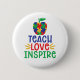 Bouton "Enseigner l'amour inspire" pour les professeurs d'autisme. Avec des pièces de puzzle dans une pomme avec une typographie mignonne et colorée en bleu, rouge, vert et jaune, ce bouton avec un message positif est un grand cadeau pour l'appréciation de l'enseignant. Une excellente façon de montrer votre soutien en portant ce bouton pour les promenades, les courses, les marathons, les collectes de fonds, les événements de bienfaisance à votre école. Parfait pour porter pendant le mois de la Sensibilisation sur l'autisme en avril. ©TeacherTribeMerch