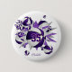 Ce bouton amusant de basket-ball comporte une "explosion" de balles de basket violet et blanc de taille variée et des formes d'étoiles violet et gris - customisez avec le nom de l'athlète et le numéro de maillot - par katz_d_zynes