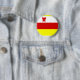 Round Button with flag of city of Santa Barbara, California; flag with vertical tricolor of white, red and yellow, with illustration of a red fort in the upper left corner