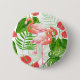 Aquarelle design motif avec des fleurs et des oiseaux flamands, la monstère et les feuilles de palmiers.