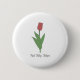 Un bouton avec une illustration de fleur de tulipe rouge botanique en couleurs pastel et un texte personnalisable : parfait pour un cadeau d'anniversaire. La tulipe est la fleur de naissance d'avril, la fleur d'Aries et est une signification symbolique de l'amour parfait et profond.