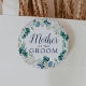 Cette mère de fleurs blanches classique du bouton du marié est parfait pour une douche de mariage de printemps. L'élégante décoration florale est composée de roses blanches et d'ivoire, de pivoines et de chrysanthèmes, avec des touches de fleurs d'aquarelle bleu périvent et de feuillage vert.