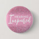 Let others know about your special needs with this girly hard of hearing badge. Features the slogan 'Hearing Impaired' over pink glitter pattern backdrop. Personalize this product with a variety of fonts, colors, and graphics, in Zazzle’s editor. Professionally printed by Zazzle on scratch-resistant plastic. For help & matching products, contact Jessica Amber via Zazzle messenger. Design © Jessica Amber, 2026.