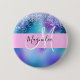 Glam holographique sirène parties scintillant scintille nom monogramme et bouton initial. Votre nom personnalisé et votre monogramme sont écrits dans un élégant script écrit à la main avec un arrière - plan rose clair. Vous pouvez modifier la couleur du texte, le style et la taille de police à l'aide de l'option personnaliser.