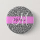 Glam et girly rose et gris / argent parties scintillant scintillent blanc nom monogramme et bouton initial. Votre nom personnalisé et votre monogramme sont écrits dans un élégant script écrit à la main avec un arrière - plan rose. Vous pouvez modifier la couleur du texte, le style et la taille de police à l'aide de l'option personnaliser. Un cadeau d'anniversaire ou de Noël parfait !