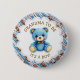 Blue and brown crocheted it's a boy teddy bear baby shower Grandma to be button. You can get one for all important people in the baby's life to keep as a sweet souvenir or keepsake for your baby shower. Make each family member feel special.