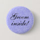 Photographie noire "Groom in!" sur motif bleu. Convient pour annoncer le fiançailles, après avoir proposé, à la fête de fiançailles ou de baccalauréat. Le texte peut facilement être customisé. Il existe aussi des modèles similaires sur les arrière - plans roses, pêche ou turquise.