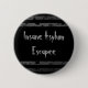 Une épingle drôle sur bouton pour Halloween ou n'importe quand en noir et gris. Le texte dit : "réfugié fou".