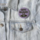 Montrez votre esprit d'Halloween avec cette épingle ou ce bouton mignon. Il présente une illustration de style dessin animé d'une chauve-souris volante avec un sourire aux dents et le message Happy Halloween contre un arrière - plan violet fumé. Fait une fête d'Halloween amusante en faveur ou petit cadeau.