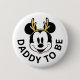 Celebrate the soon-to-be dad during the festive season with this adorable holiday button! The design features Mickey Mouse's cheerful face, adorned with playful golden reindeer antlers, perfect for a winter celebration. The prominent "DADDY TO BE" text clearly highlights the guest of honor, making him stand out at his baby shower. This charming button adds a touch of classic Disney magic and holiday spirit to the celebration.