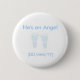 Il est un bouton d'ange avec des empreintes de pas bleues. Il a un endroit au fond où vous pouvez ajouter votre propre date.