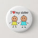 De mignons personnages en bâton, l'un portant une robe jaune et l'autre une robe bleue, tenant la main avec de grands sourires heureux. Au-dessus des filles en lettres noires sont les mots I Love My Sister. Le mot amour a été remplacé par un joli coeur d'amour rouge avec un bord frileux.
