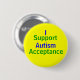 Bouton jaune avec vert et le bleu : Je soutiens l'acceptation d'autisme
