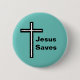 C'est un joli bouton chrétien. Il a une photo d'une croix et les mots Jésus Saves.