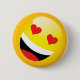Sympa, heureux, rire jaune émoji yeux coeur bouton badge