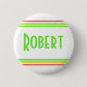 Ajoutez votre nom à cette goupille coloful de bouton de rayures. verdissez le jaune rouge-rose. Choisissez la personnaliser pour changer la couleur ou la police d'arrière - plan.