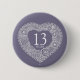 13e mariage dentelle anniversaire badge d'épingle du bouton. Belle dentelle effet coeur forme imprimé graphiques lit 13 ans. Le 13ème anniversaire est traditionnellement associé à la dentelle et le coeur symbolise l'amour. Autres articles correspondants disponibles. Dessin original et design de dentelle graphique par Sarah Trett pour www.mylittleeden.com