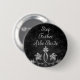 Magnifique épingle sur bouton dans un noir grungy avec un design feuille fantaisie sur elle en gris argenté. "Étape Père de la Mariée" est écrit en haut.