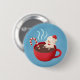 Bouton avec un mignon bonhomme de neige qui se baigne dans une tasse de chocolat au cacao chaud comme s'il s'agissait d'un bain à remous. Cependant, avec le sucre de canne, il fond. Texte : "Restez chauds". Illustration adorable pour les fêtes de Noël.