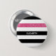 Personnalisez ce bouton motif large et horizontal moderne à rayures noir et blanc avec une bande de parties scintillant rose chaud en ajoutant le nom de n'importe quelle petite fille. Ce motif à rayures graphiques tendance est parfait pour le fashionista chic. Image imprimée plate, PAS de parties scintillant réelle.