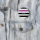 Personnalisez ce bouton de motif à rayures blanches et noires horizontales modernes avec un style rayure violet de parties scintillant brillant en ajoutant le nom de toute fille girly. Ce motif à rayures graphiques tendance est parfait pour le fashionista chic. Image imprimée plate, PAS de parties scintillant réelle.