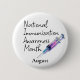 Célébrez la santé et la prévention grâce à ce bouton de rappel du Mois national de sensibilisation à l'immunisation, conçu pour sensibiliser et susciter la conversation. Le texte "Mois national de sensibilisation à l'immunisation" apparaît dans une police manuscrite conviviale en haut, ajoutant une touche personnelle et accessible. À droite, une illustration d'aquarelle douce d'une seringue symbolise la vaccination avec une couleur douce et de la clarté. Ancrage de la conception, le mot "août" se démarque en lettres majuscules en bas, marquant le message avec un signal visuel fort. Idéal pour les professionnels de la santé, les défenseurs et les événements de sensibilisation, ce bouton est à la fois significatif et attrayant.